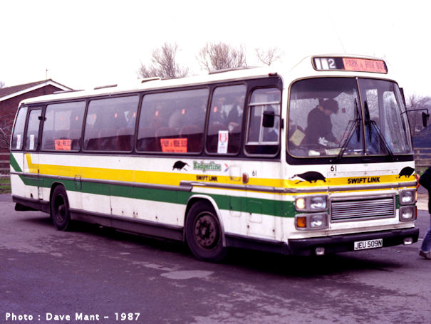 | 61 (photo) | JEU509N (ex-GJD194N, CSV524) | RELH4/764 | 9/1987 (Badgerline 2084) | 3/1988 (Light of East Stour) | |