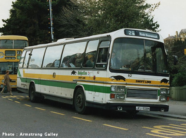 | 62 (photo) | JEU508N (ex-GJD196N, CSV992) | RELH4/763 | 9/1987 (Badgerline 2086) | 3/1988 (Light of East Stour) | |