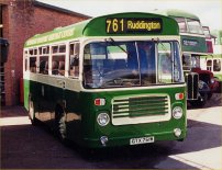 preservation). Kept at the Nottingham Heritage Centre, Ruddington. Painted in green and white livery, by 5/2000 |