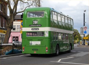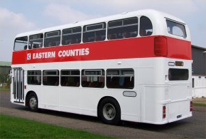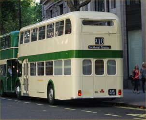This is an interesting view from Mark Pitman's fantastic photographic collection. It shows Series 2 flat front ex-Southdown 522 (WCD522K) with Paul Burton Coaches of Bury St Edmunds in Suffolk in an extavagant livery. It carries registration 5227DD and went on to run for one of the first generation of London sightseeing operators, London Tour of Colney Heath. The registration was later transferred to an MCW Metroliner which ended up with New York Apple Tours alongside many VRs. If anyone has a photo of 522 in London or can fill in the details of its early career after leaving Southdown I would be very pleased to hear from you. | September 11th 2012 |
