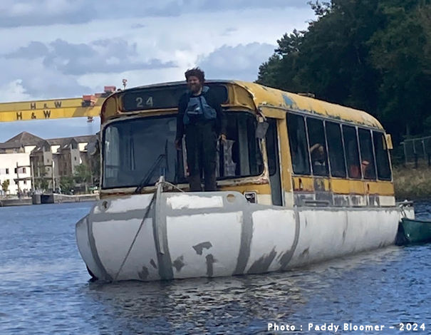 ![]() | When I first heard from Paddy Bloomer about the fate of AXI2554 I have to admit I thought it was an April Fool's joke. But no, he really has acquired the body from this former Citybus RELL6G and fitted it to a boat which plies its trade on the River Lagan around Belfast! Seen here this summer with the iconic Harland & Wolff cranes in the background, Paddy is standing on deck watching out. The bus had sat at Craigavon Commercials scrapyard since 2010 and the chassis still remains their property! No question this one qualifies for my Unusual Bristols page. | August 4th 2024 |