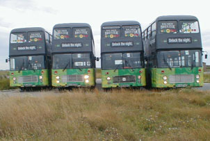 I recently received a very interesting selection of photos from Karl van Camp showing this quartet of VRs in a very smart livery for Bacardi Breezer during a promotional tour of Belgium. From the left these are SKL682X, XJJ655V, BKR859T and BJG671V. These buses have no doubt been supplied by David Hoare of Chepstow who runs the Chepstow Classic Bus operation with a heavy emphasis on former Stagecoach Group vehicles and the VR in particular. If anyone can confirm the identities I would appreciate it, but in the meantime thanks very much to Karl for sending this interesting photo. | 4th September 2001 |