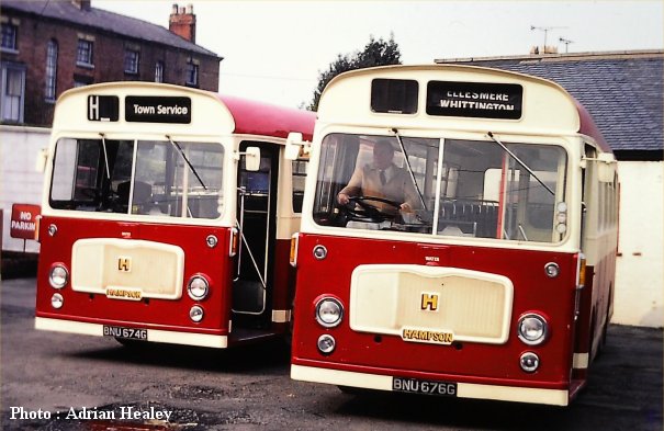 The current lockdown associated with the COVID-19 virus has given many enthusiasts the opportunity to review and scan their photographic collections and several have kindly been in touch with the offer of help for this website. Not least amongst them is Adrian Healey who is from the Midlands and has contributed many interesting views from the area and beyond such as this one of early LH pair BNU674G and BNU676G in use with Hampsons of Oswestry. New to Midland General in their beautiful colours they passed through Trent and stayed together with several small independent operators. Both were unlucky not to make it into preservation, finally being scrapped in the early 1990s. | June 13th 2020 |