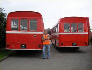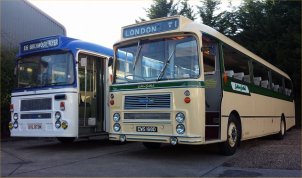 Craig Schofield took this photo today at the Lincolnshire Vintage Vehicle Society gathering showing the only two fully restored surviving Alexander Y-type bodied REs in existence! They could hardly be two more different REs apart from their body manufacturer - EWS168D is a motorway coach Series 1 RELH (with stick shift) which spent its career with Eastern Scottish pounding between Scotland and London while UVL873M pootled around town with Lincoln City Transport for many years! I think that fans of this website will agree that they make a fine sight together. | November 3rd 2013 |