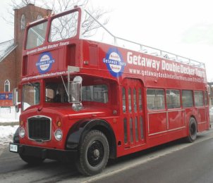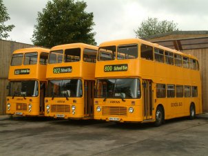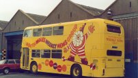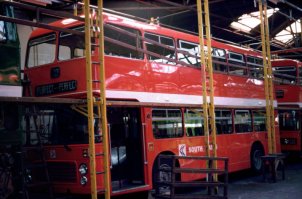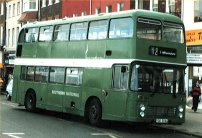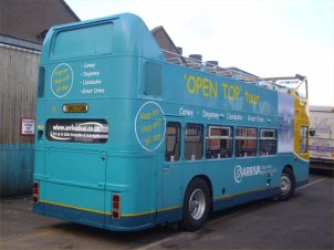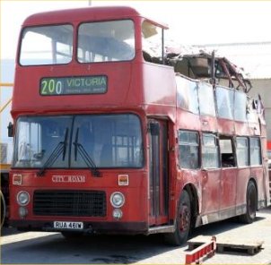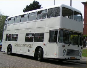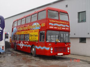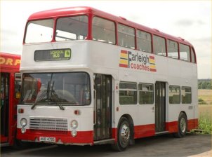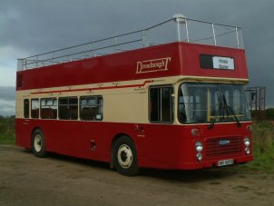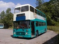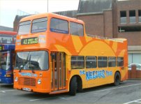 Paul Gilroy sent me this photo (taken by Dave Bartlett) of his former Southdown convertible open-top VR, UWV620S which runs in his Dreadnought Coaches fleet, based in Alnwick in the remote North East of England. Last season it ran with the upper half in Dreadnought livery and the lower half in former Lakeland Experience green livery, but it has now been superbly repainted in full fleet livery. Paul also runs two Lodekka open-toppers, both ex-Mac Tours in Glasgow. Do go and have a ride on his tour if you get the chance! | October 7th 2004 |