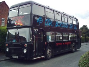 Well, Photos of the Month really. These two photos show the conversion undertaken by The Ink Station on former Burnley & Pendle/GHA Coaches FFR172S to turn it into a mobile tattoo studio. Pennywise (the owner - you can meet him on his website) has had a little trouble with the council over where to park his "bus", but as he has pointed out to them it's only got two seats so how can it be a bus!! How anyone could object to having the wonderful ECW shape outside their house I just don't know, but seriously we wish Pennywise well with his new venture. | 11th January 2004 |
