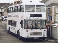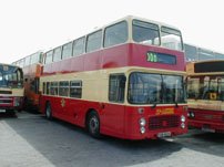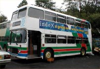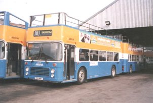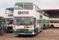 The Welsh bias of this feature continues this week with a view of YCU961T (formerly OBR774T) an open-topper with Arriva Cymru's Shoreline operation. It is seen in September in company with the entire fleet of sighteeing VRs at Rhyl depot where they will presumably spend the winter months in storage. Now OVG961 with Arriva Cymru, this VR started its career as a standard closed-top VR with United Automobile as their number 774, passing to Northumbria as their 555 in 1986. It passed to Crosville Wales in 1994 and received this yellow and blue colour scheme in May 1998. Thanks go to Paul Forbes for supplying this photo and for the many other interesting views he has supplied from the prinicipality. | 27th October 2000 |
