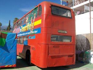It isn't very often that a VR believed to have been long since scrapped is featured on here, but that is the case with ex-East Midlands 134 (JNU134N) which was last reported withdrawn by Marshall of Baillieston in Scotland in 1996 but which is now happily sunning itself in Spain on the island of Tenerife at the Playa de las Americas. The bus was discovered by Ben Fosker (former proprietor of The Running Footman) and from enquiries it seems the bus may have been used as a playbus in the U.K. prior to shipping to Spain - if anyone has any further details do please let me know. It was unusual in remaining with East Midlands in the early 1980s when all the rest of the batch was cascaded to other NBC fleets (Bristol Omnibus and West Yorkshire). | May 14th 2013 |