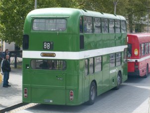 Malcolm Redpath came across this long-surviving Series 2 VR in Budapest in July and kindly sent me the print for scanning. I thought it would be a shame not to share this lovely vision with my readers, not to mention the attractive payload who are setting up their promotional stand for Dove Soap!! This is former West Riding JHL775L which has been in Hungary since 1989 - has anyone else come across it during the previous 15 years in Eastern Europe? Other VRs known to be in this region can be found here. | September 5th 2004 |