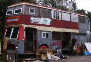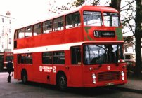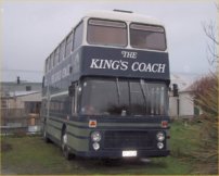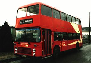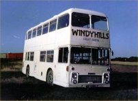 Nick Doolan made the surprise discovery of this VR near London Bridge Station during December 2002. It is former Eastern Counties JAH243V, and it is a surprise because it was thought that this had been scrapped by Stephenson, Rochford during 2000. However it looks like this is the real thing as it has the correct destination display, front cowl and distinctive non-standard windows (this one has short hoppers while most V-registered VRs had the longer Widney hoppers). It appears to have been converted to a mobile canteen for use by a Film/TV location company in a style that is becoming increasingly common as can be seen from the Non-PCV page of this website. | 2st January 2003 |