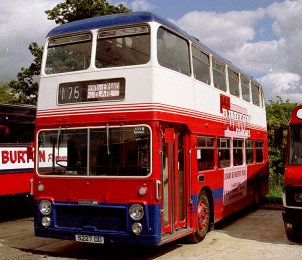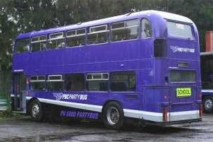 Steve King and Lee Garrett have recently repatriated this rare highbridge coach-seated VR back to the North East. This is most definitely a VR with a history! JPT906T was new to Northern General 3406 as part of a large batch comprising 3392-3434 (JPT892-9y34T) of which only this and 3401 still survive (see Preservation Focus). It passed to Sunderland & District when Northern was split, and was withdrawn in August 1992. In January 1993 it passed to Blue Triangle of Bootle and was reregistered 449CLT (from Routemaster RM1449), receiving the mark LDS190A later that year when RM1449 was reunited with 449CLT. In July 1994 it passed to Mercury Passenger Services in Kent which operation was bought by Maidstone & District in September 1996. It lasted another six months with Mercury then made the trip across to Bristol for yet further service with Eastville Coaches where it was painted allover white with black window surrounds and was used in the associated Leisure Travel fleet. It passed to South Gloucestershire (Durbin) in February 2000 and received yet another reregistration when it temporarily carried LHT728P, swapped from another of Durbin's VRs. The blue and white fleet livery pictured here was applied in August 2000 and it ran in service right until acquisition by Steve and Lee in February of this year. They have quite a selection of liveries to choose from in which to restore 3406! | 14th March 2002 |