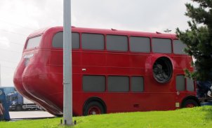 Is this the strangest double deck Bristol you've ever seen? Well, no it isn't - in fact it is ex-Hants & Dorset LH ORU532M which was converted for use as a tree lopper by the company way back in 1982 and was used as such for many years until it was saved for preservation. The stairs to the new top deck can be seen through the back window. The red roof is of course from the convertible VR parked next to it which is in fact UFX858S. Many thanks to Peter Cook for taking the photo. | November 25th 2014 |
