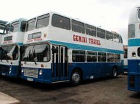 Another view from the camera of William Blower shows former West Yorkshire LWU466V at the depot of Gemini, Birchgrove in the company of STW24W and another unknown VR. The smart blue and white livery is slightly let down by the remnants of the previously-carried Stagecoach stripes at roof level to the rear (these can just be made out), but it is good to see the VR flourishing in South Wales at least. | 24th August 2000 |