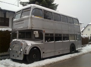 I am always pleased when a former Cheltenham District vehicle turns up, especially when it is so obviously well cared for as 5087 (NHU670R) which is owned by John Bowden and Marleen Schelvis in Bristol. It has been converted to a high standard as a mobile home. The door on the offside upper deck leads out onto a trailer which is usually parked alongside the VR during trips. | February 25th 2015 |
