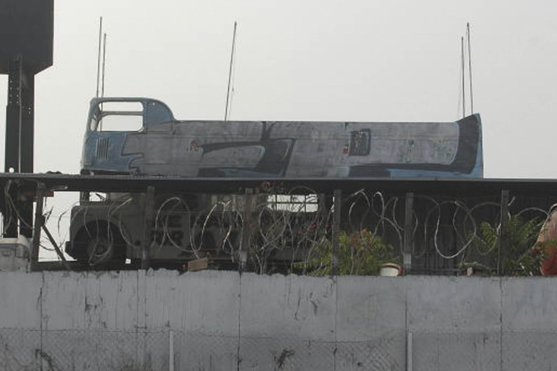 Bob Martin discovered this Lodekka in a scrapyard in Burbank, Los Angeles in September 2009, but was not able to get close enough to find any identifying marks. If you recognise it, particularly the very unusual treatment for the open-top conversion do please get in touch and let me know. Thanks.
