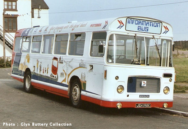 | RESL8-343 | JEH198K | Potteries 198 | Potteries Motor Traction (?/1982) (Photo) (Photo) (Photo). Greater Manchester Buses North (11/1996). P.M.T. (?/1998) (Photo). Dave Brundrit, Stafford (Photo) | ?/1982 | ?/2002 (Preserved) | Publicity vehicle |