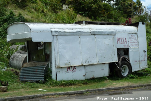 ![]() At first glance you could be forgiven for believing this isn't a Bristol at all, but then the familiar ECW roof peak catches your eye and you realise that this is in fact an LHS body fitted with the cab from a Bedford TK truck! The LHS in question is OJD13R, new to London Transport as BS13, which was converted for use as a mobile conservation classroom on the island of St Lucia by the World Parrot Trust. By 2011 the cab had been removed again and the fried chicken could only be obtained from the static ECW body. | |